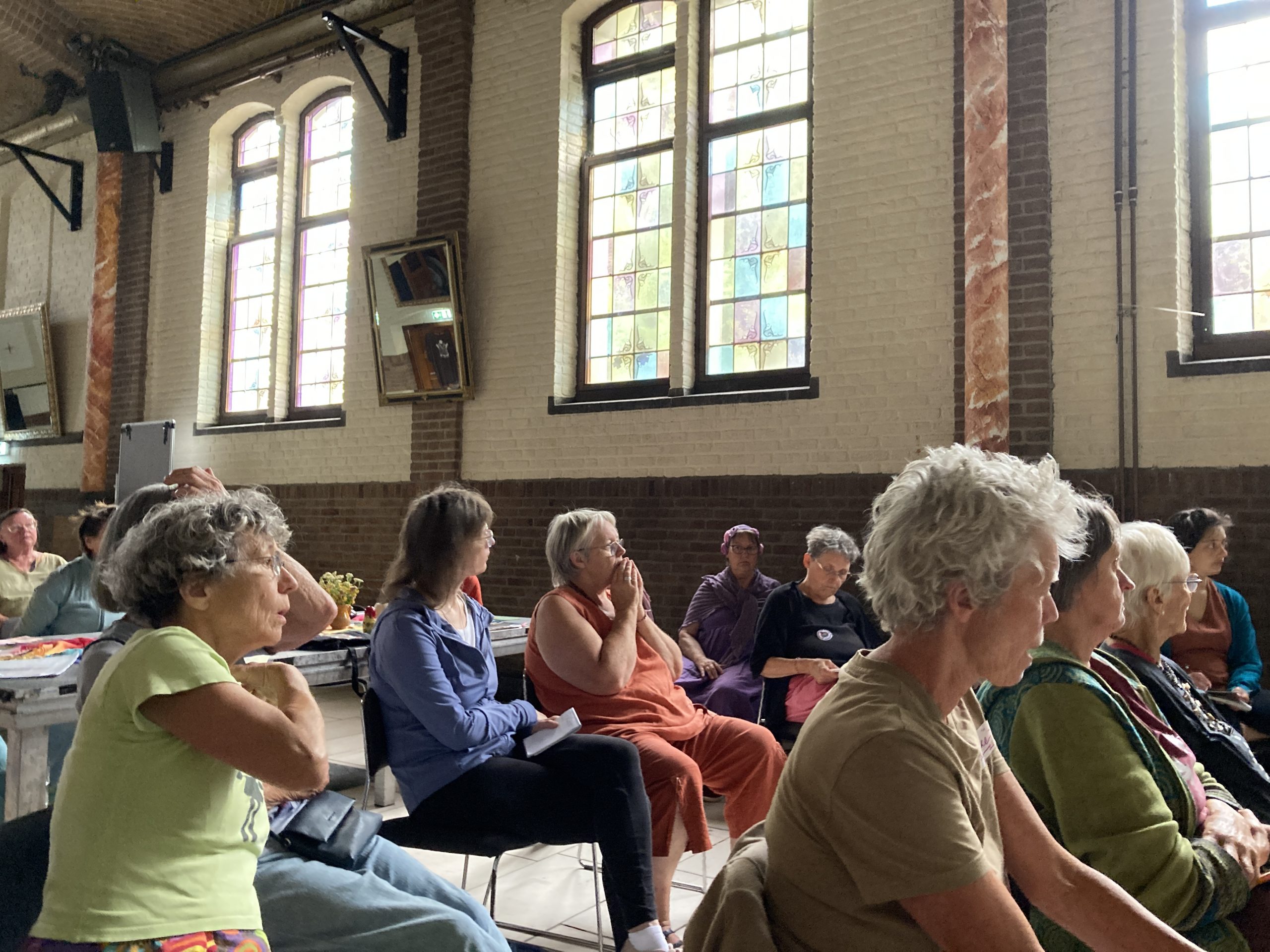 Heide Göttner-Abendroth will give the keynote speech in the Amazonensaal. She will be introduced in German and English by Martina Engl-Fürstberger and Simone Plaza from the MatriForum. This will be followed by presentations and workshops in the morning and afternoon on the matriarchal themes of social order, politics, economics, ecology, and spirituality. Several speakers traveled from Finland and other European countries, even from the USA and South America, which we were very honored to have. The delegation from Costa Rica also included two indigenous women from the Bribri.