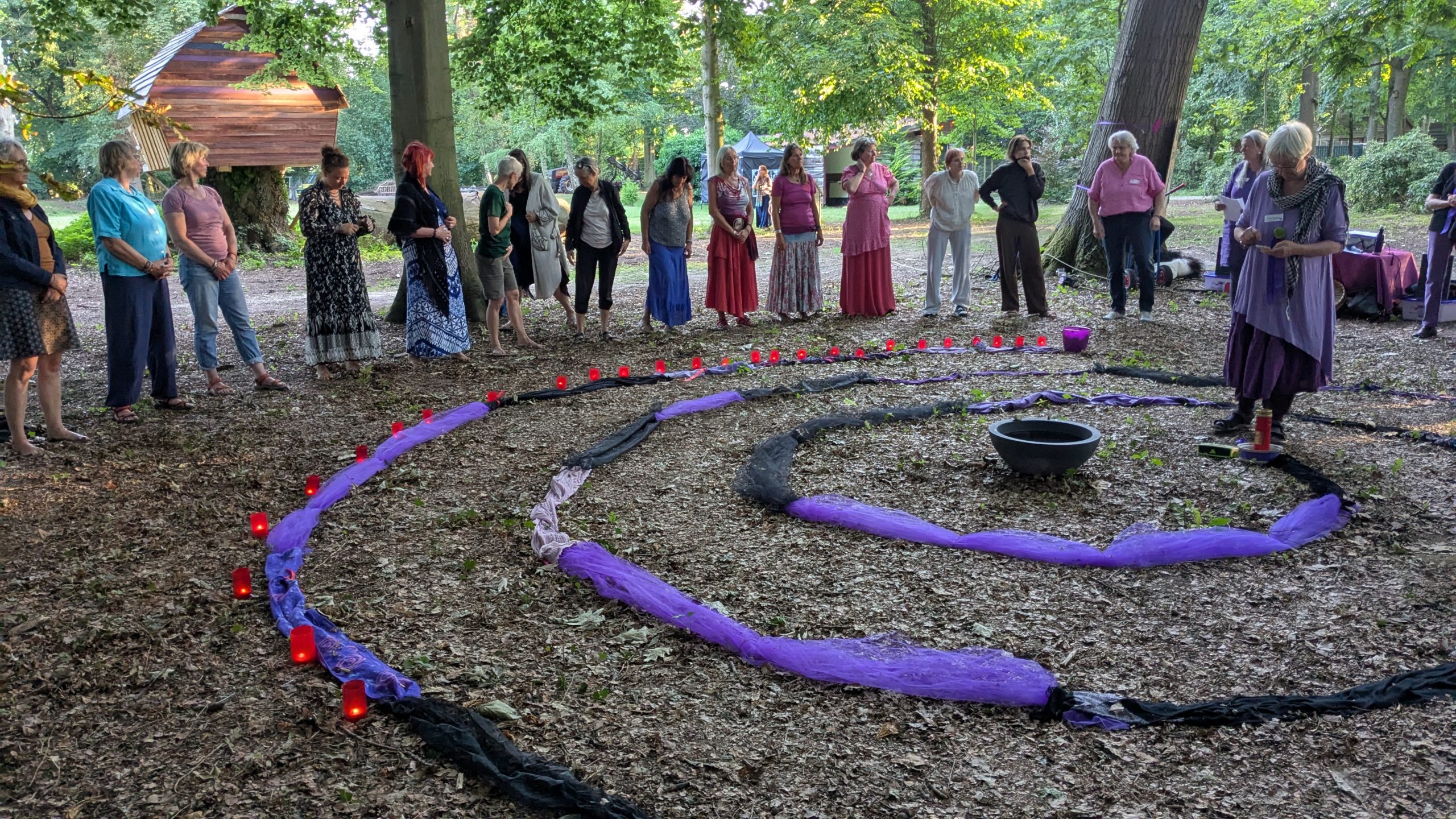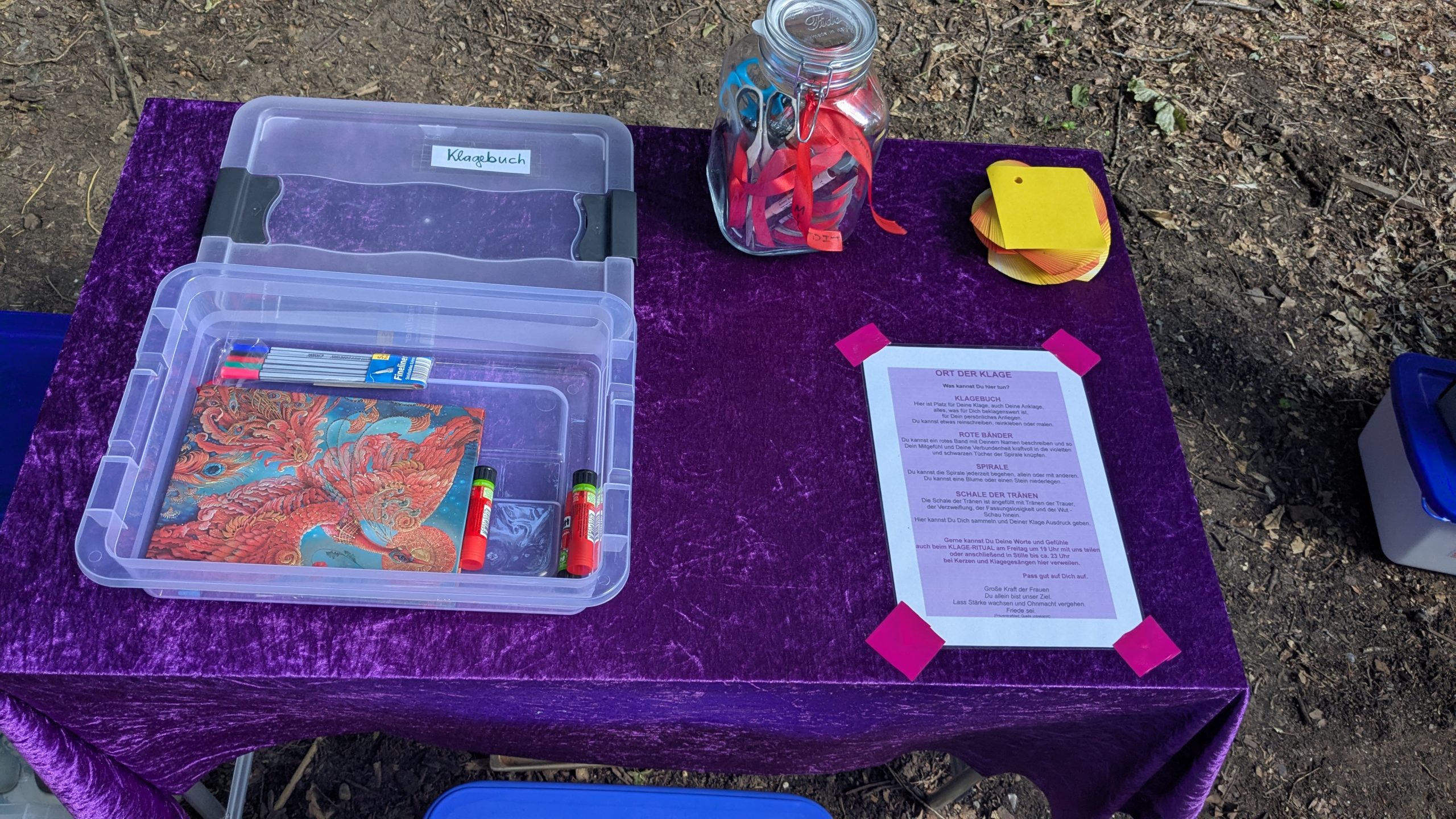 At the end, Yael gives us a touching voice ceremony, accompanied vocally by Meera. Hearts open once again, tears and emotions flow freely. After the closing ritual, we set off into a matriarchal future. May each and every one of us carry a piece of it into the world until we meet again at the next festival, in a regional group, in front of a peace memorial, or on March 8th in front of a city council building. Thank you for being there and for sharing these wonderful days. See you next time, your organizing team!