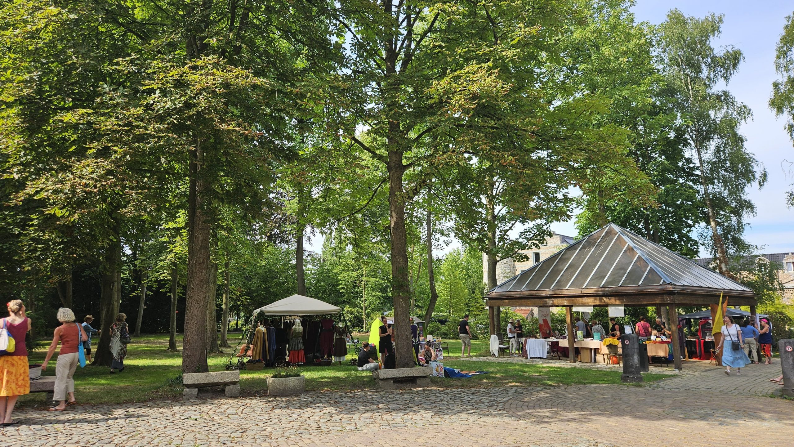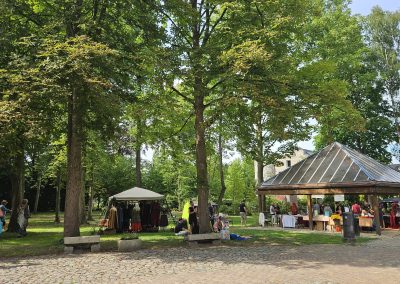 Check-in opens, the first guests arrive, exploring the grounds and rooms. The market stalls are filled with many small and large treasures, a colorful abundance. They are lovingly handcrafted by professional artisans. Tents and campers are set up, rooms are settled. The cinema program begins, and the beautiful weather invites you to explore the romantic park. People meet up, old acquaintances are rekindled, and new ones are formed.